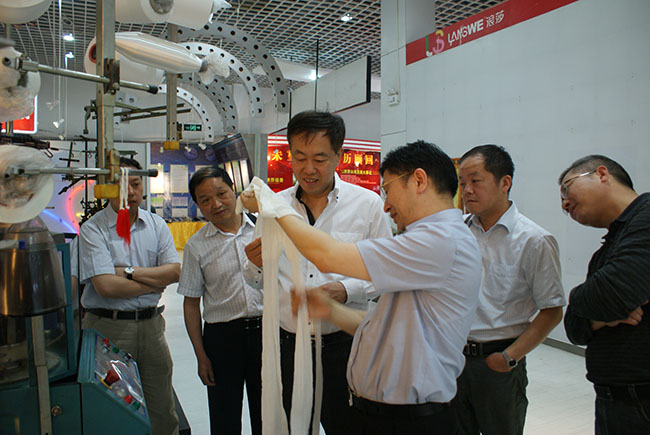 中國包裝總公司副總經(jīng)理李華一行來浪莎考察指導,公司董事長翁榮金親自接待。