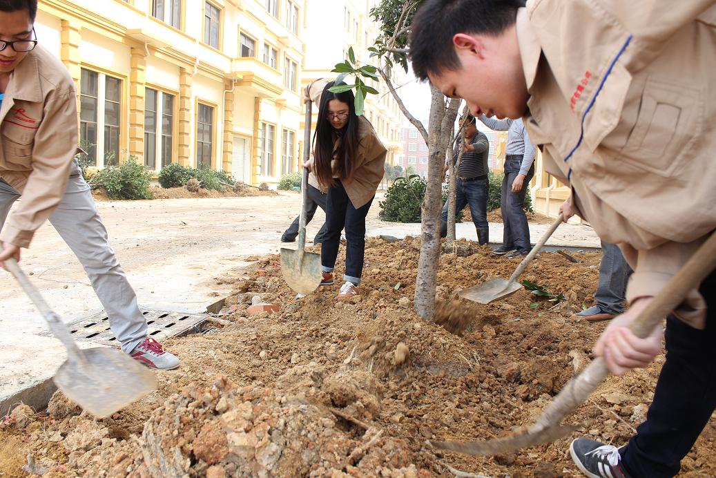 年輕黨員個(gè)個(gè)精神抖擻,種起樹來十分賣力