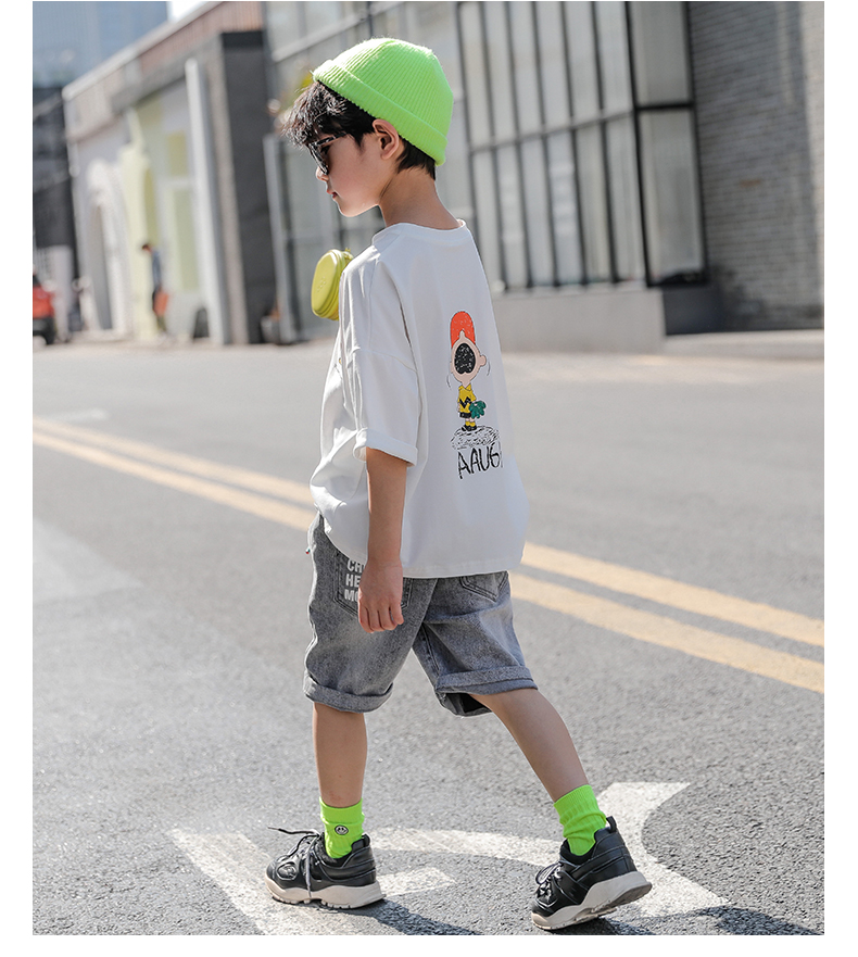 浪莎男童短袖t恤純棉2021新款中大童夏裝中童半袖韓版兒童裝上衣