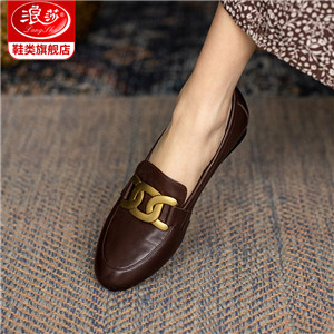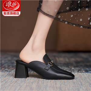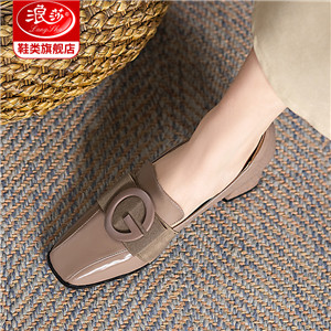 浪莎粗跟單鞋女2021早春女鞋一腳蹬小皮鞋中跟方頭深口真皮樂(lè)福鞋