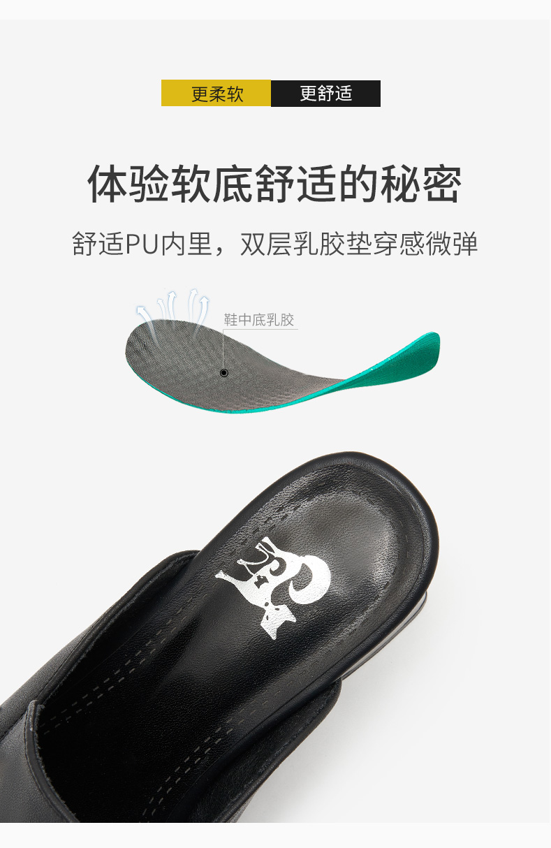 包頭半拖鞋女2021年一腳蹬女鞋夏時尚穆勒鞋真皮高跟方頭外穿涼拖