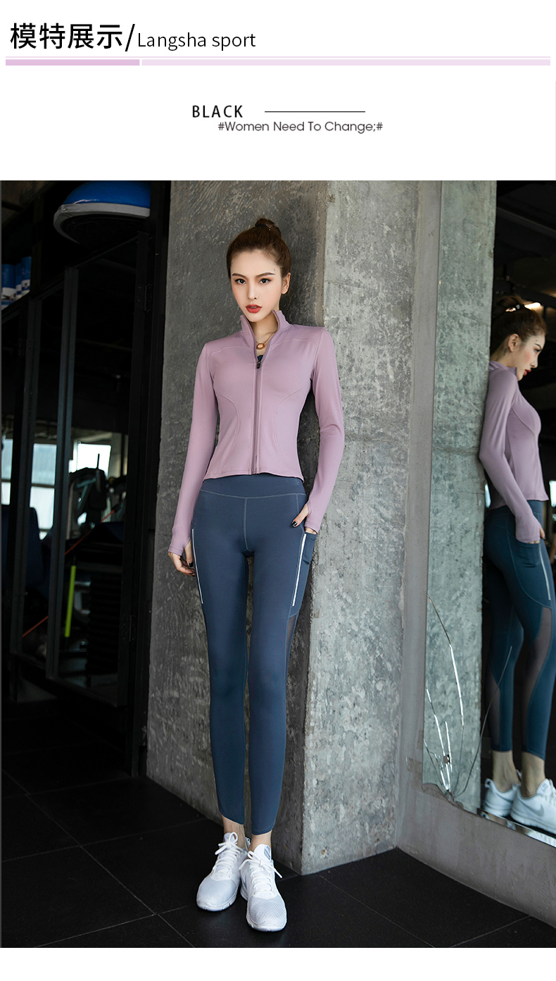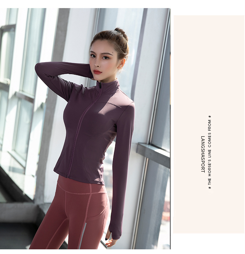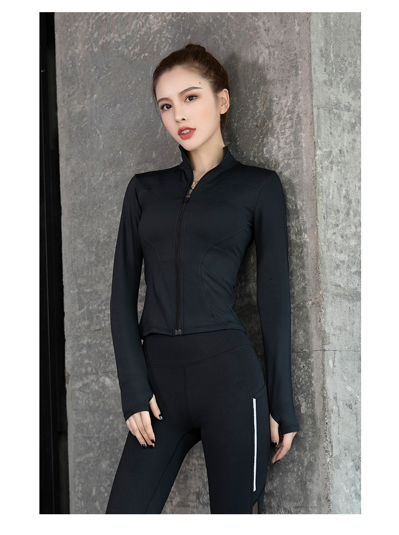 浪莎健身衣女緊身跑步速干拉鏈秋冬戶外立領(lǐng)黑色瑜伽長袖運動外套