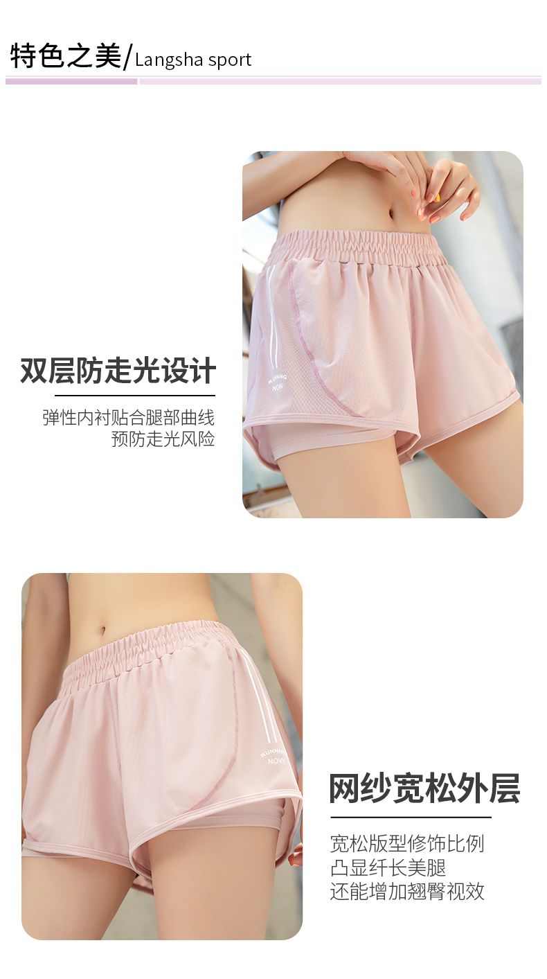 浪莎運(yùn)動(dòng)短褲女薄款寬松速干翹臀跑步訓(xùn)練網(wǎng)紗瑜伽防走光健身短褲