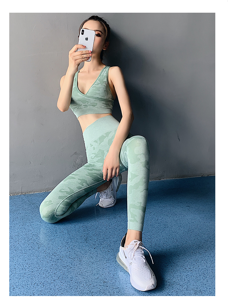 浪莎高腰健身褲女彈力緊身套裝提臀迷彩速干跑步運動收腹瑜伽褲