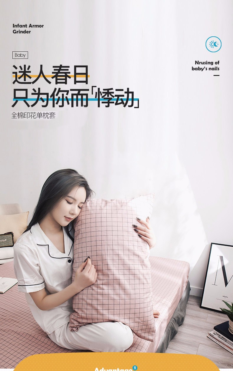 浪莎全棉枕套一對裝純棉印花枕頭套單人學生宿舍枕芯套48x74cm