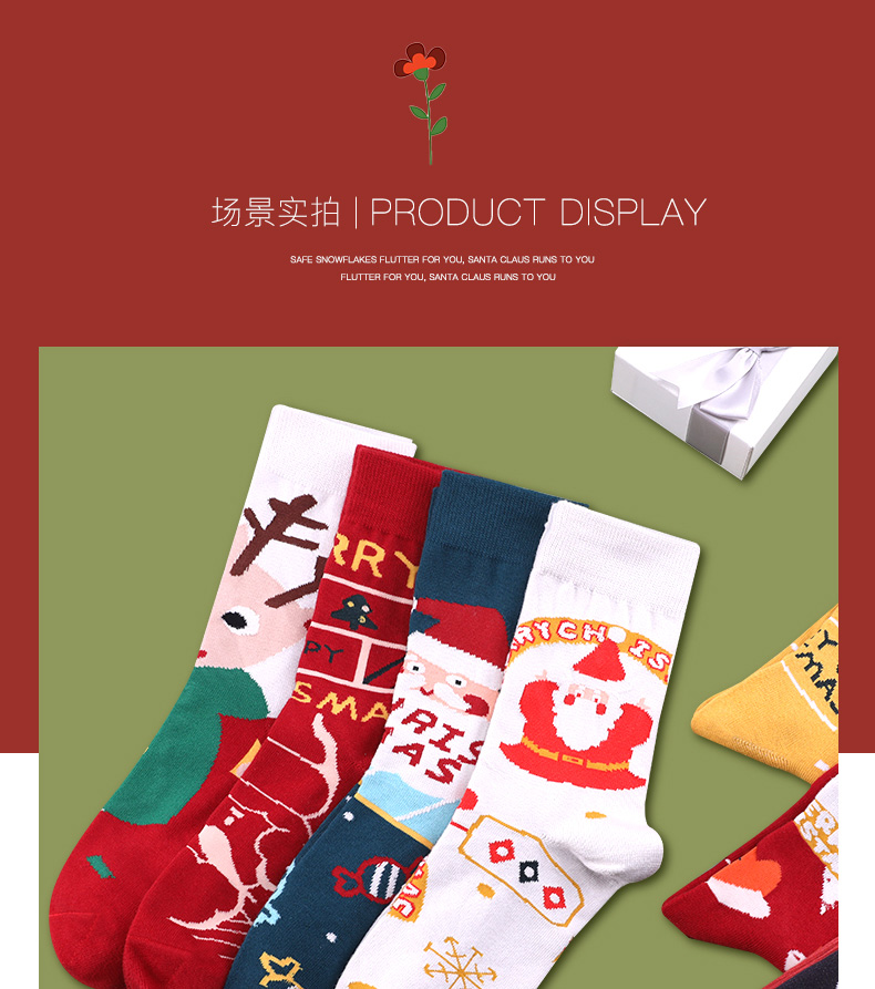 浪莎圣誕襪子女中筒襪秋冬季可愛本命年紅襪子圣誕節禮盒加厚棉襪