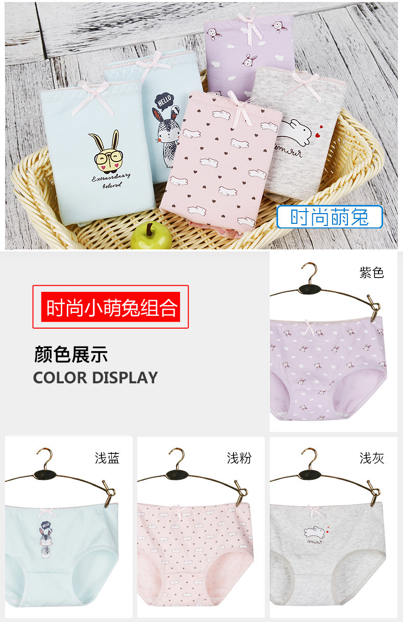 浪莎女士內褲女三角褲中腰春夏少女純棉面料透氣全棉日系女生褲衩